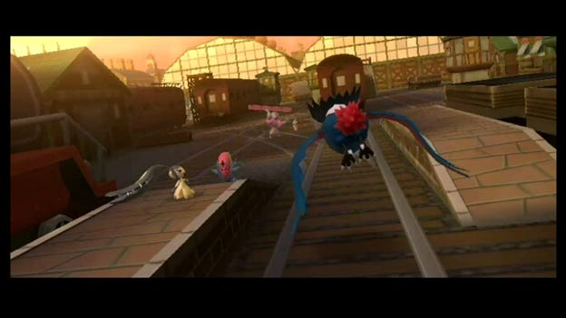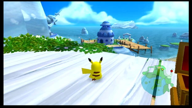 In the next scene, we take control of Pikachu, and are greeted by our friend Piplup, who teaches us how to play in the game. We then meet Timburr for a friendship tutorial, and proceed into PokéPark proper. There’s a cutscene of bird Pokémon flying around the world, which is filled with life. It’s just a taste of what’s to come.